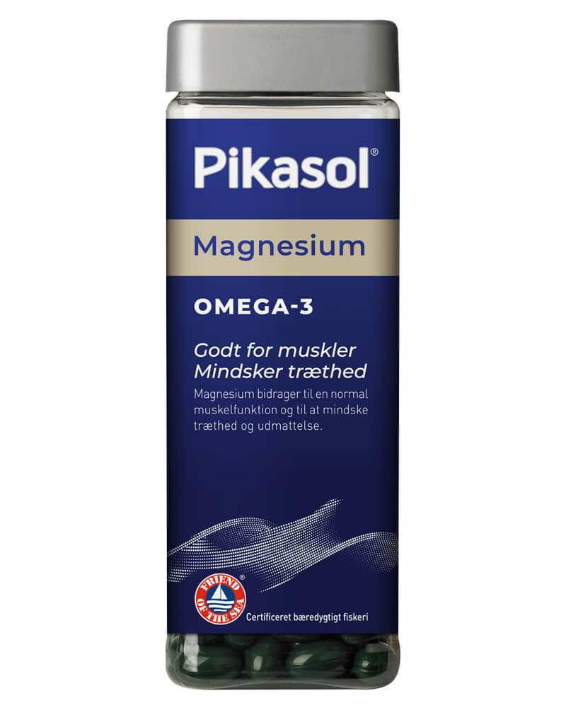 Her får du et tilskud fra Pikasol, der indeholder højkoncentreret fiskeolie kombineret med magnesium, C-vitamin og D-vitamin. Dette tilskud bidrager blandt andet til en normal hjertefunktion og et normalt syn.