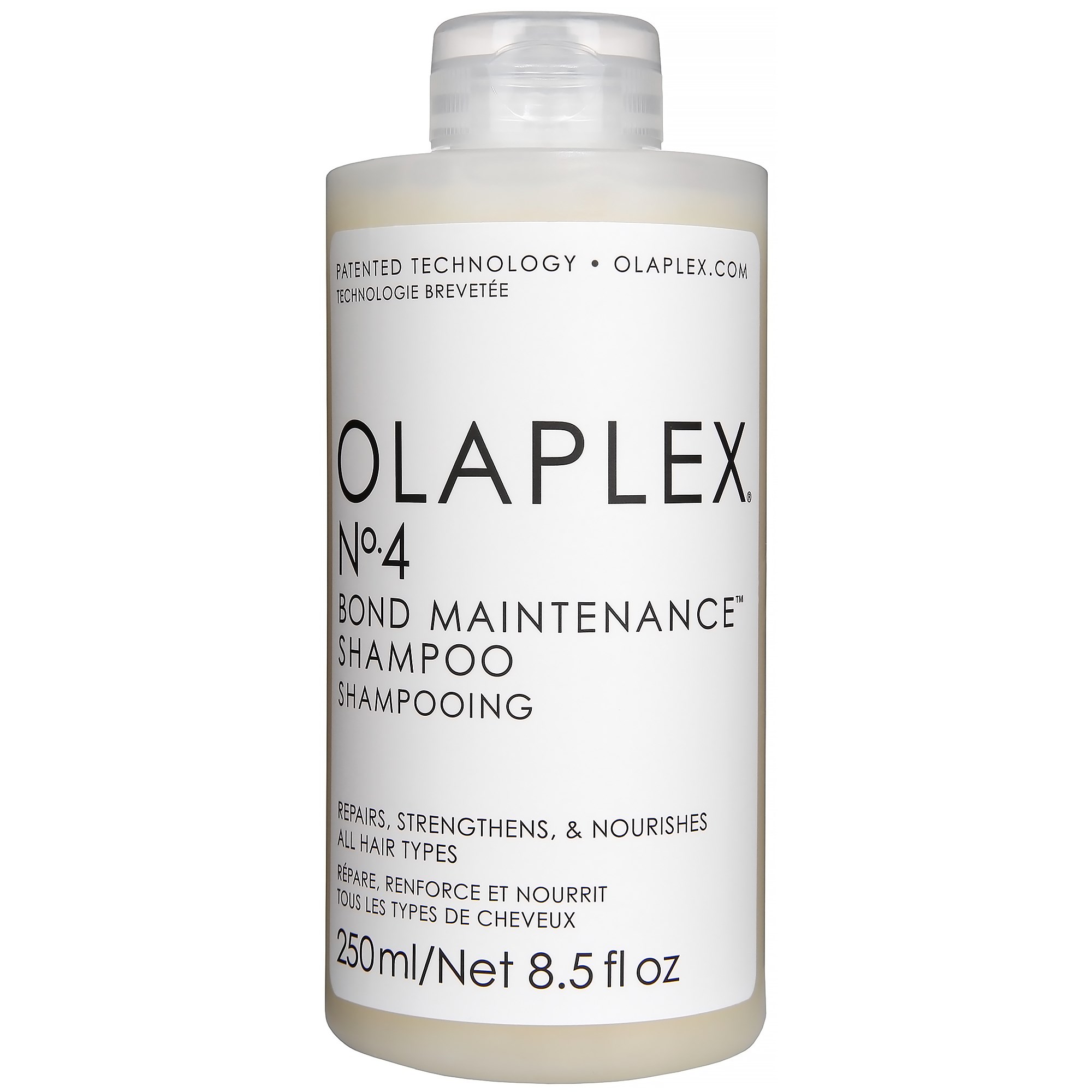 Olaplex NO.4 Bond Maintenance er en shampoo uden sulfater, som er patenteret grundet dens innovative ingrediensliste, herunder Olaplex’ eget molekyle, som genopbygger hårets svovlbroer, som på daglig basis nedbrydes af alt fra sollys til styling.