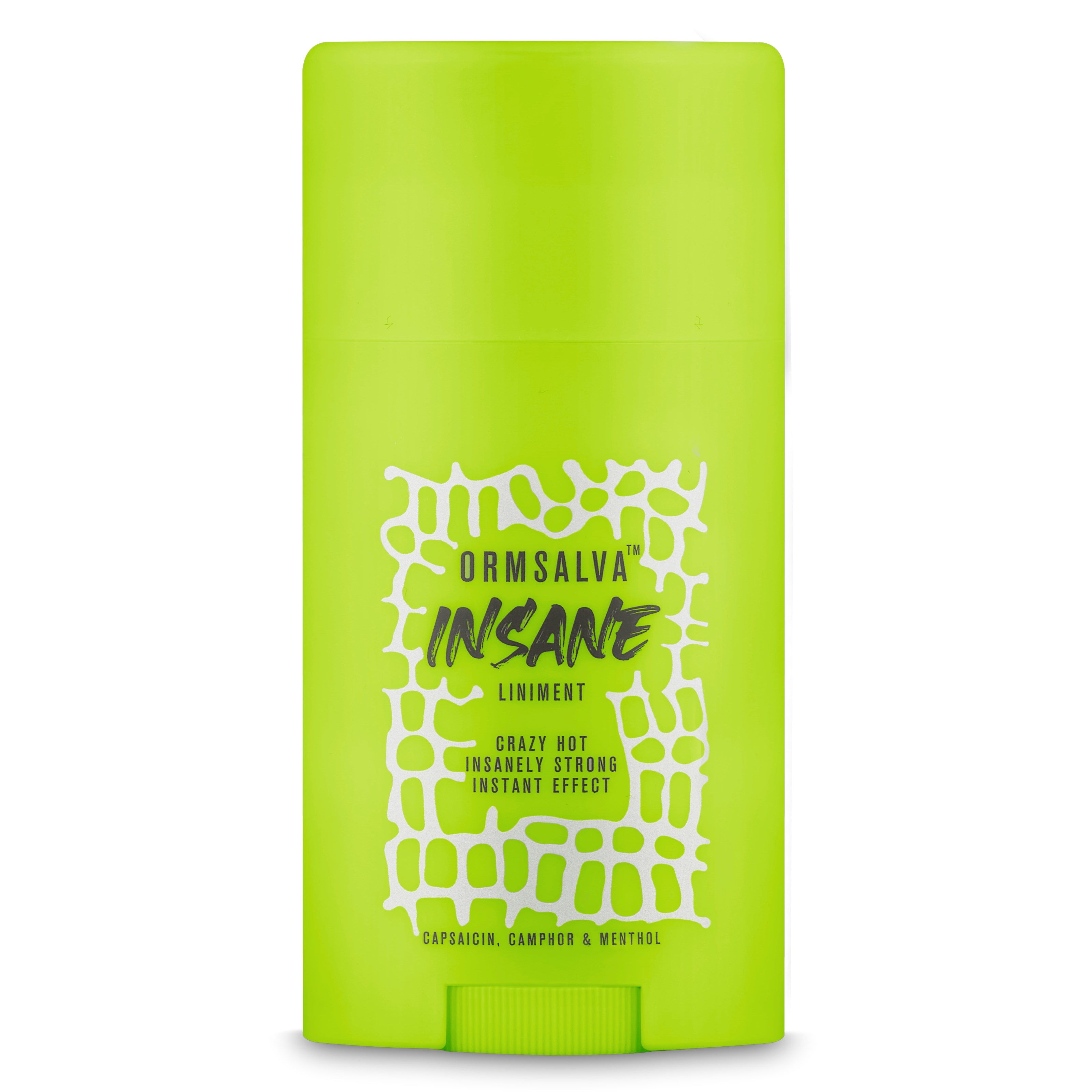 Med Ormsalva Insane får en kraftfuld stick, der indeholder en varm blanding af capsaicin, kamfer og mentol, der øger varmen i huden. Produktet giver efterfølgende lindring, og det har en afslappende effekt. Ormsalva Insane virker øjeblikkeligt, og det varer i lang tid.